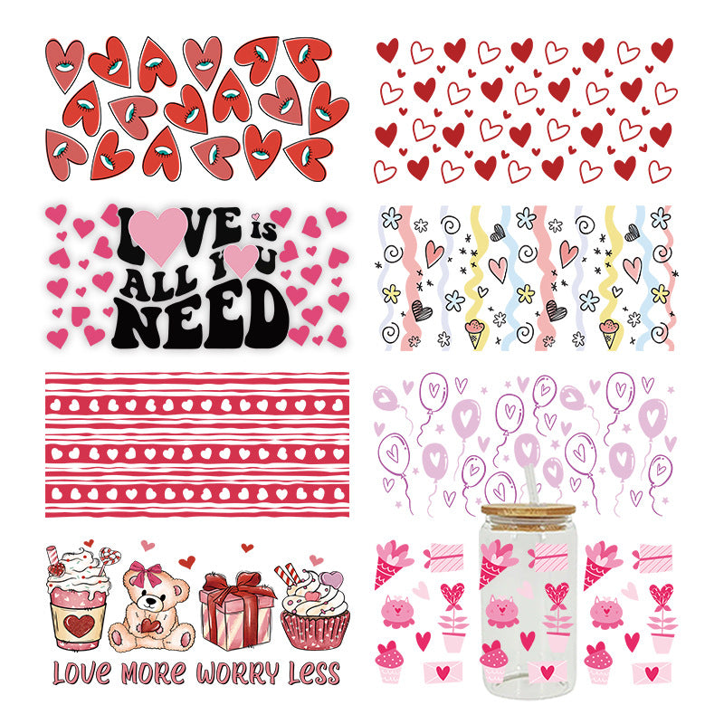 Wholesale Pink Love Valentine's Day 16oz Cup UV DTF Wraps