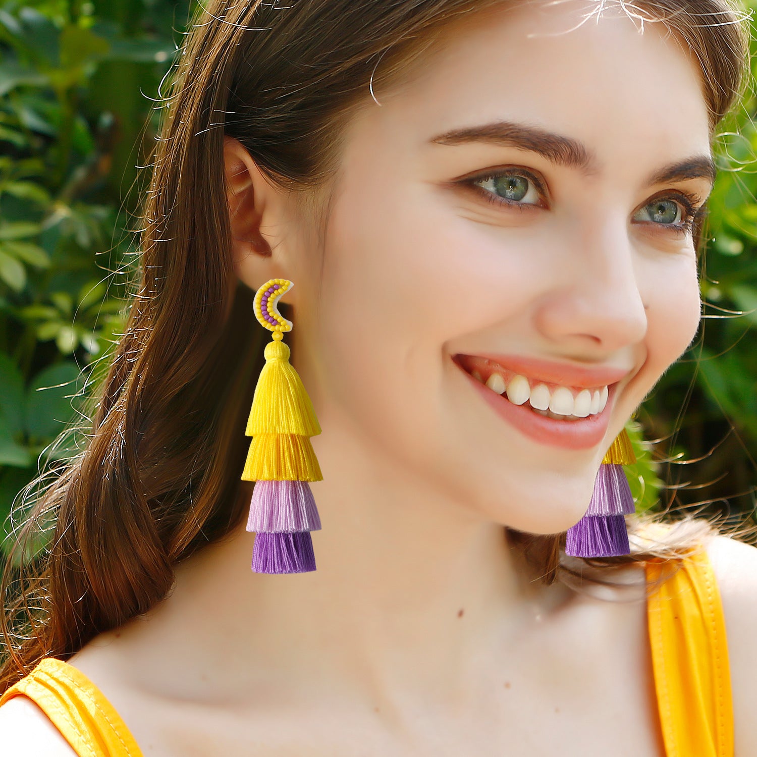 Wholesale Retro Ethnic Style Tassel Earrings Handmade Cotton Thread Rice Beads Braided Star and Moon Asymmetrical Earrings