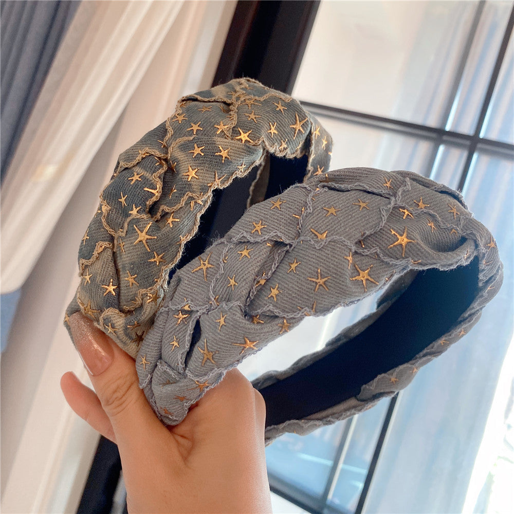 Wholesale Three-dimensional Hot Stamping Five-pointed Star Denim Braided Twist Headband