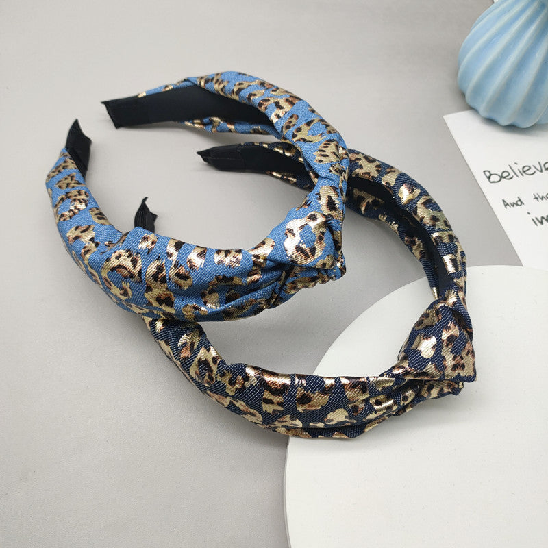Wholesale Wide-brimmed Denim Retro Leopard Print Headband
