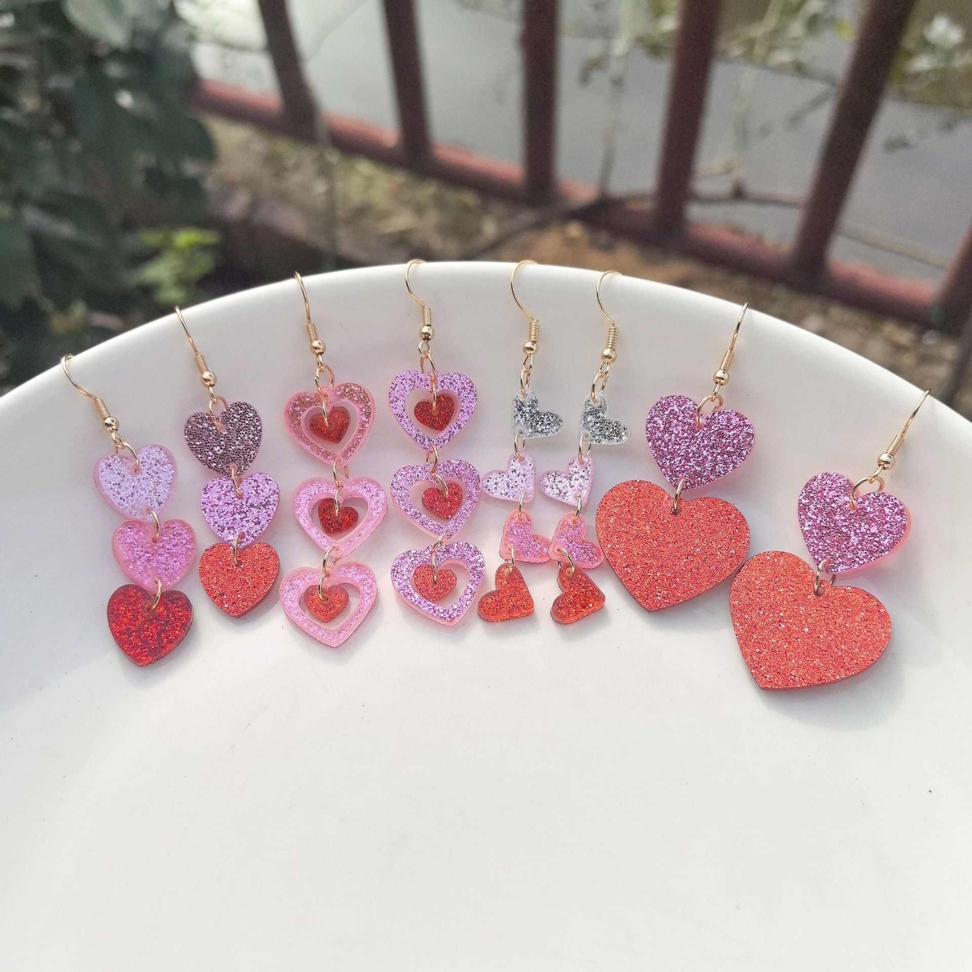 Wholesale Valentine' s Day series pink red sequin love acrylic earrings