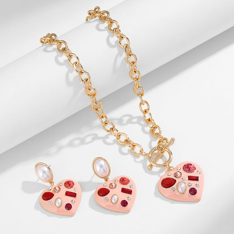Wholesale 15PCS Valentine's Day Series Love Drops Oil Necklace and Earrings Set