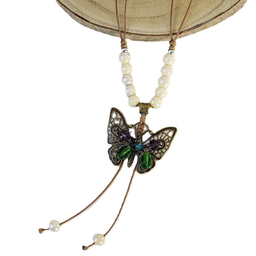 Wholesale Butterfly Long Ceramic Beads Necklace