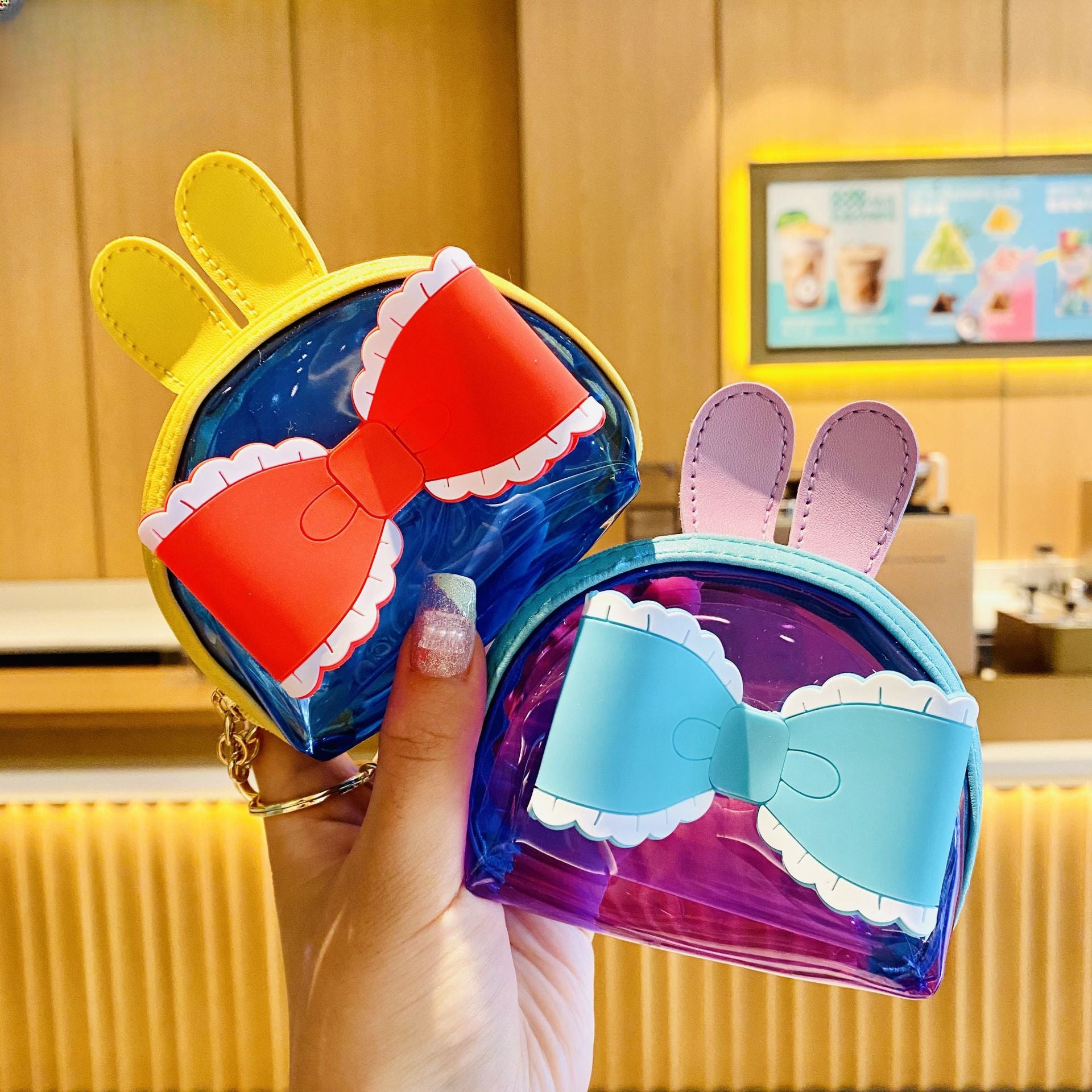 Wholesale Color Transparent Big Bow Coin Purse Keychain