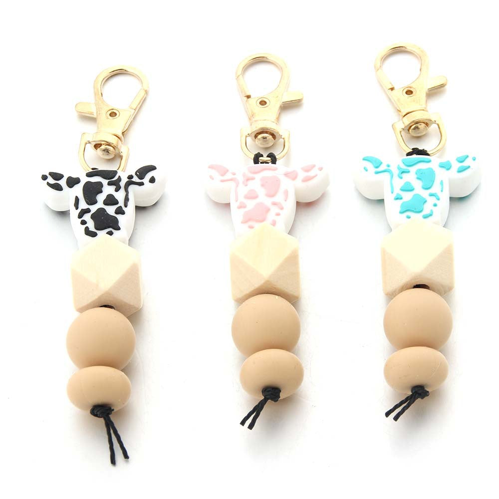 Wholesale Cartoon Bull Head Silicone Bead Keychain