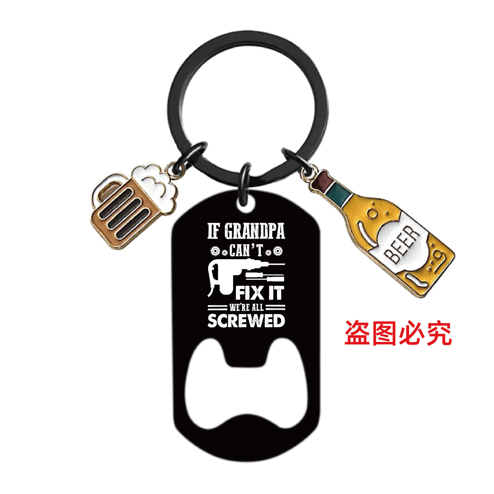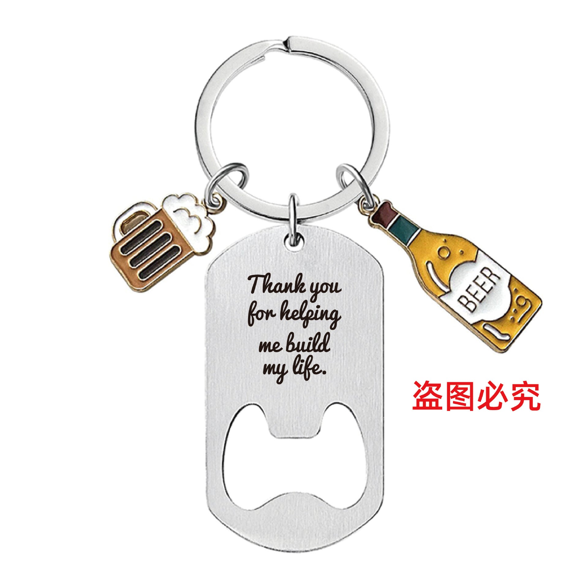 Wholesale Father's Day Gift Metal Engraving Stainless Steel Bottle Opener Keychain