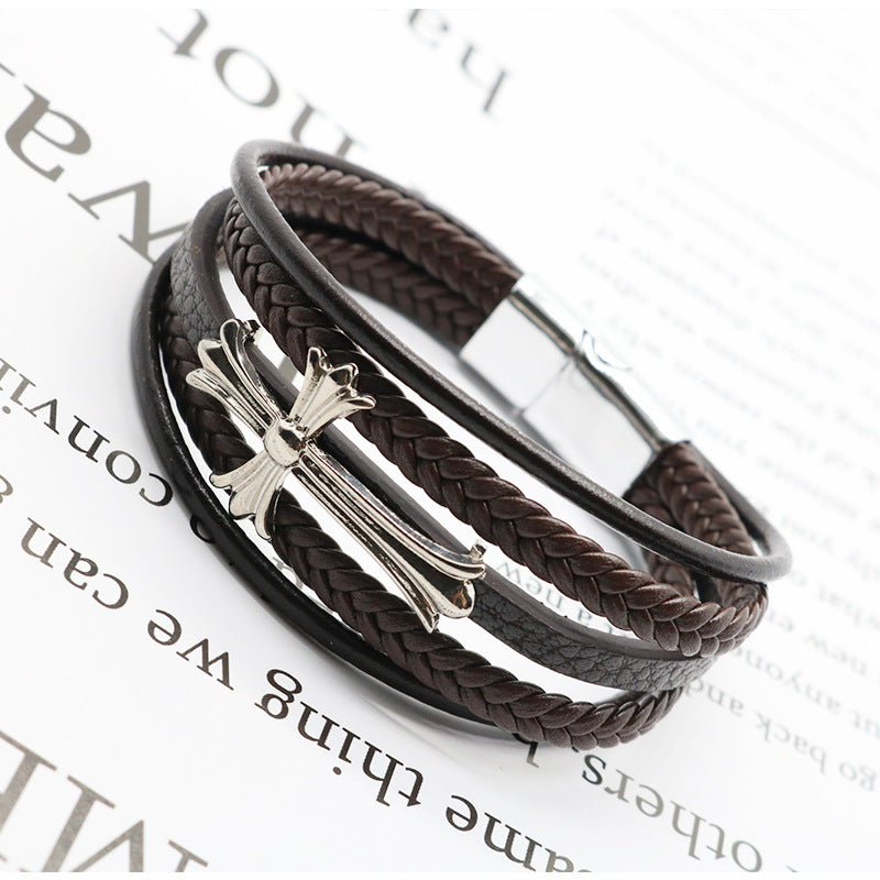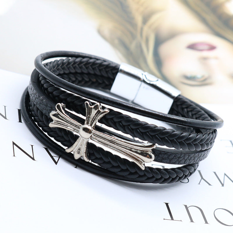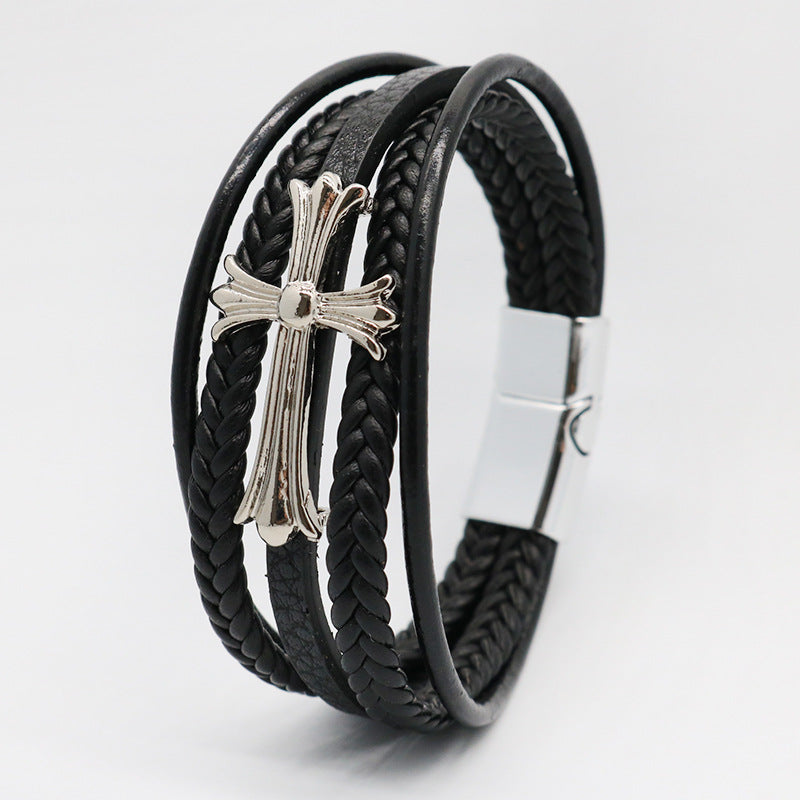 Wholesale Cross Multi-layer Leather Rope Woven Bracelets