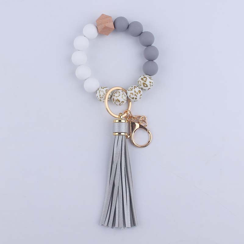 Wholesale Silicone Leopard Bead Wrist Leather Keychain DIY