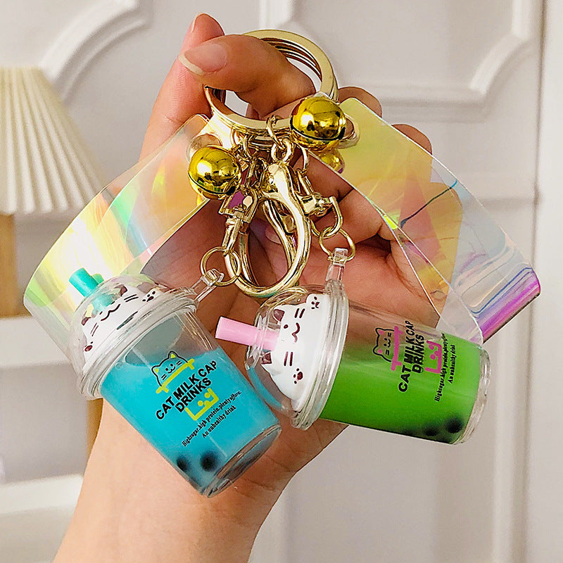 Wholesale Acrylic Oiled Cat Pearl Milk Tea Creative Keychain