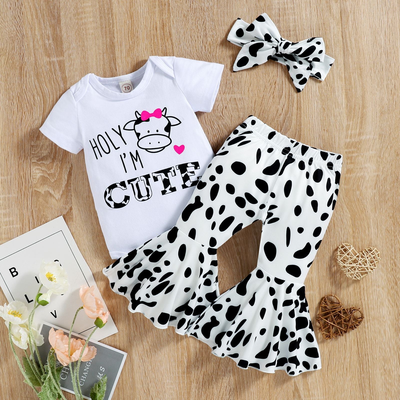 Wholesale Kids Milk Cow Alphabet Print Baby Clothes