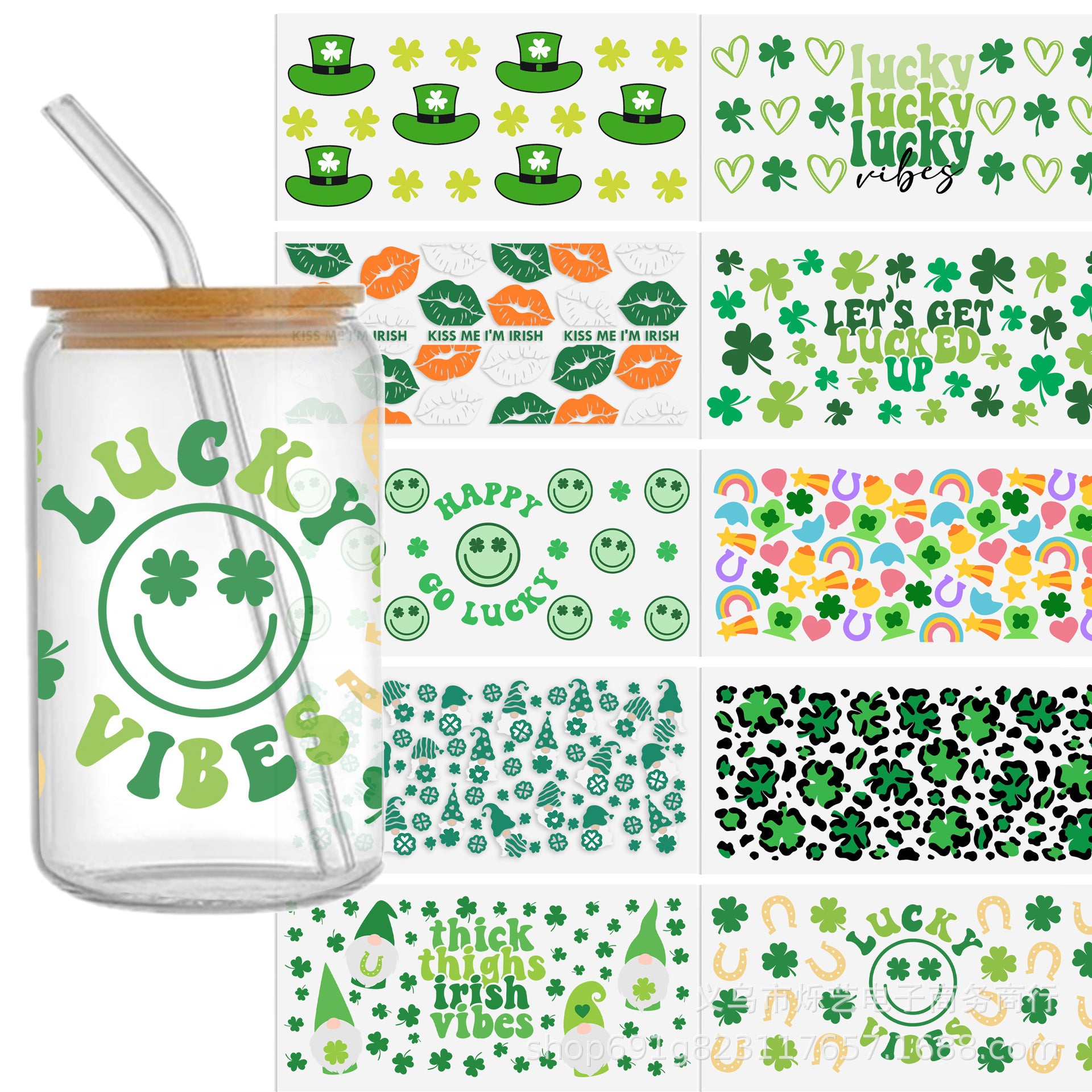Wholesale Green Smiling Face Hat Halloween 16oz Cup UV DTF Wraps