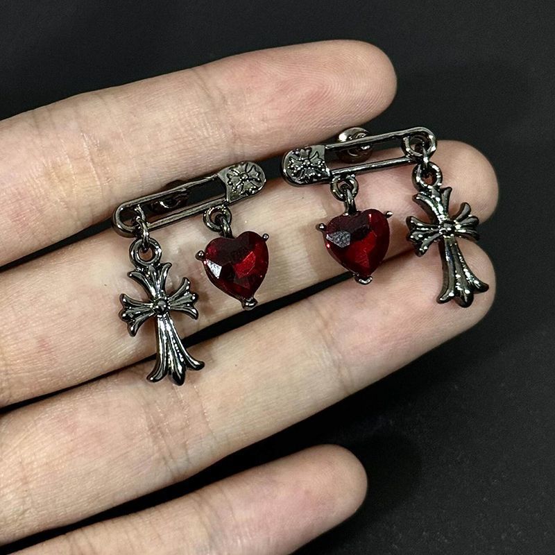 - 1 pair of heart-shaped zircon cross earrings
