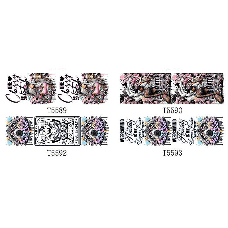 Wholesale 5pcs UV DTF Wrap Black and White Butterfly Rose Pen Sticker