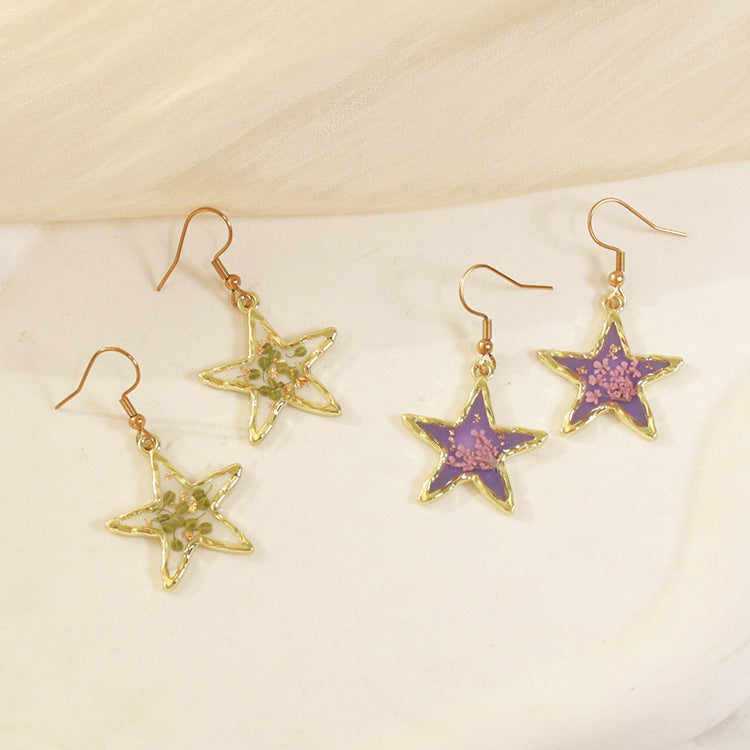 Wholesale 6pcs Small Fresh Five-pointed Star-shaped Immortal Flower Earrings