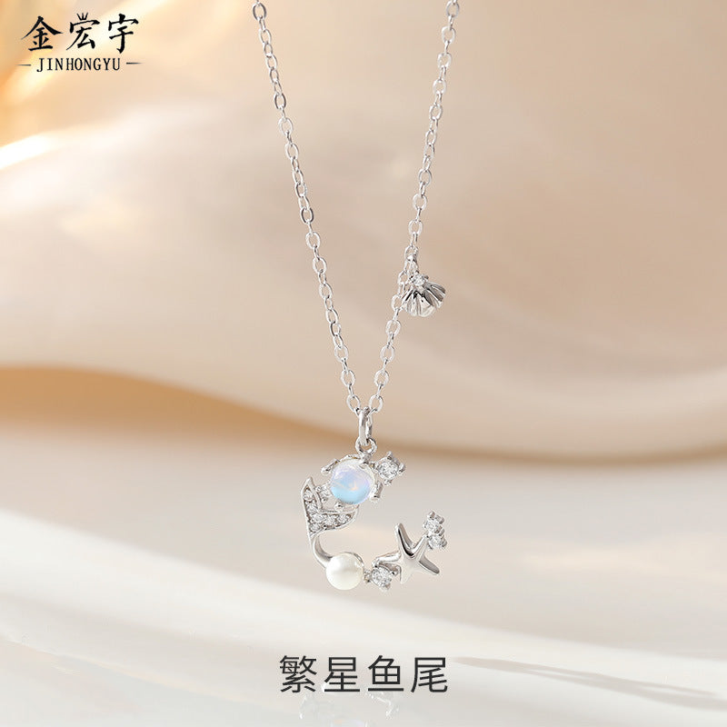 Wholesale 925 Sterling Silver Star Fishtail Moonstone Clavicle Necklace
