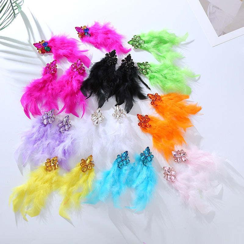 Wholesale Alloy Diamond Feather Flower Long Temperament Tassel Earrings