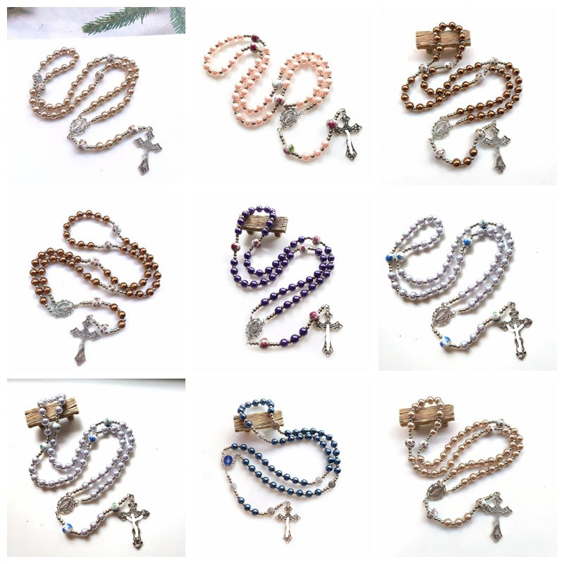 Wholesale Ceramic Rose Glass Pearl Pendant Men's and Women's Versatile Sweater Chain