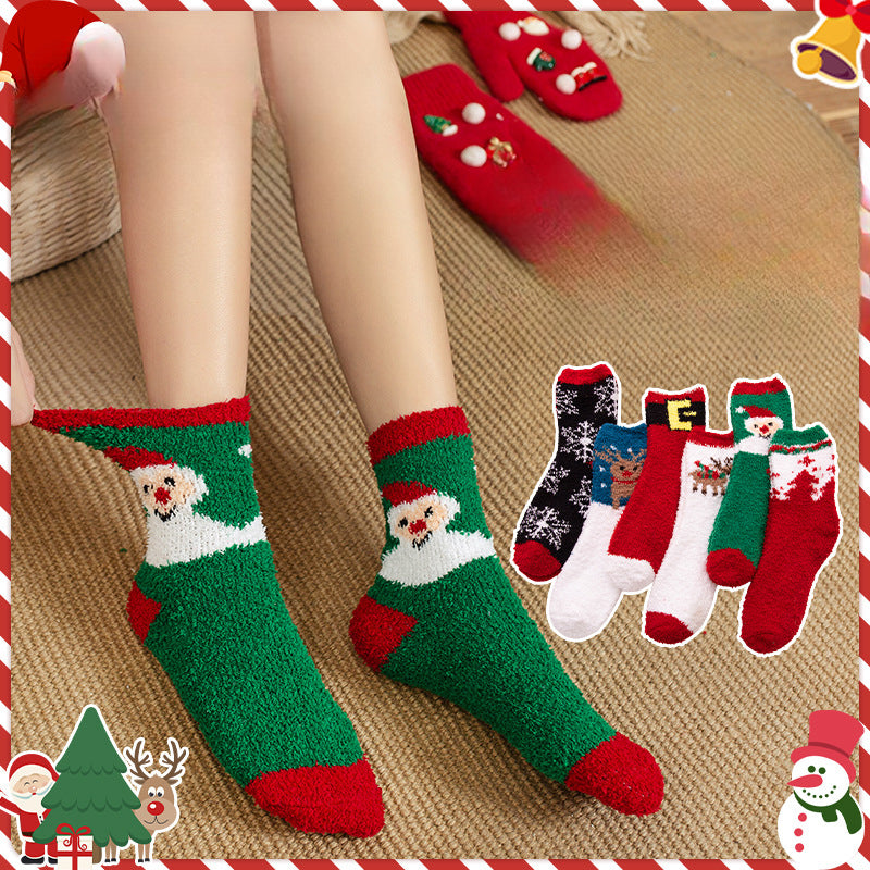 Wholesale Christmas Winter Women's Home Coral Plush Thick Sleeping Socks