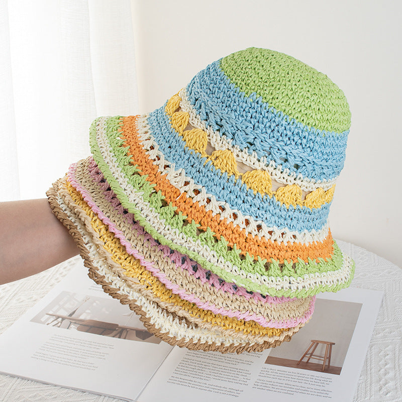 Wholesale Fisherman's Hat Rainbow Straw Hat Summer Travel Seaside Beach Holiday Sun Hat Tide