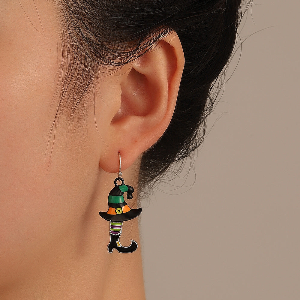 Wholesale Halloween Alloy Diamond Drop Earrings Retro Fashion Hat Shoes Earrings