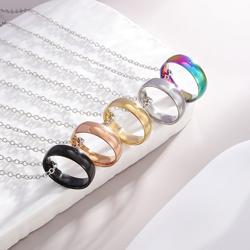 Wholesale Hot Selling Titanium Steel Simple Fashion Round Ring Necklace