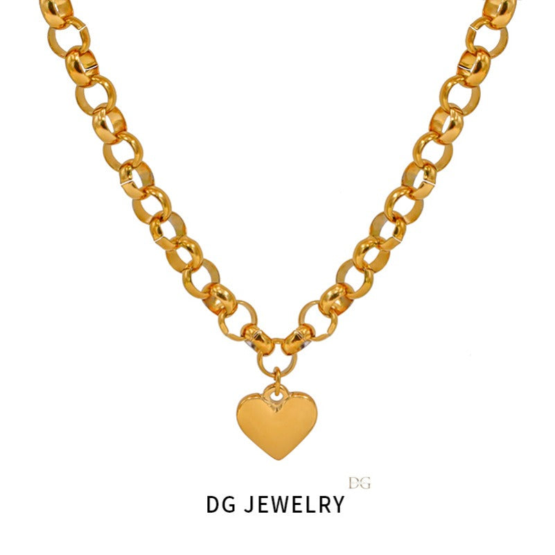 Wholesale Simple and Versatile Smooth Love Pendant Titanium Steel Necklace Set