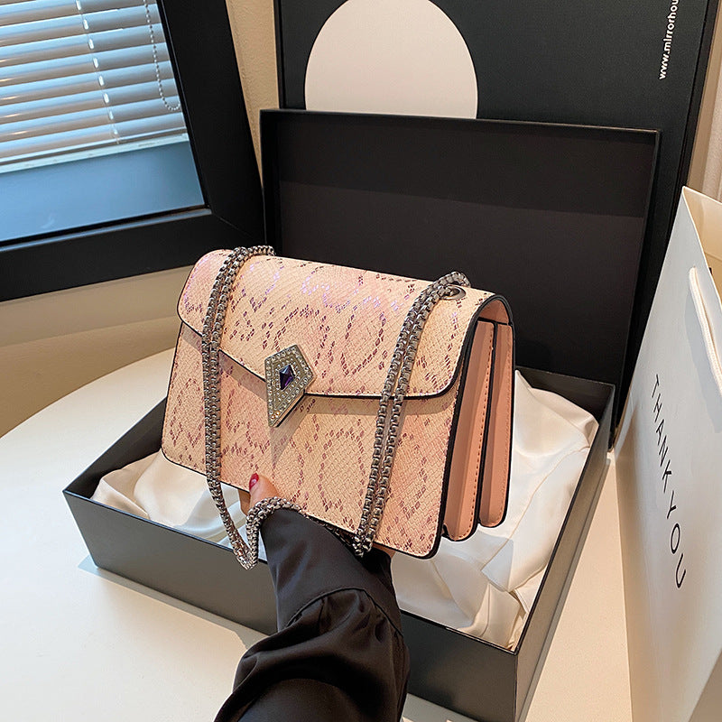 Wholesale Snake Pattern Fashion One-shoulder Crossbody Chain Small Square Bag