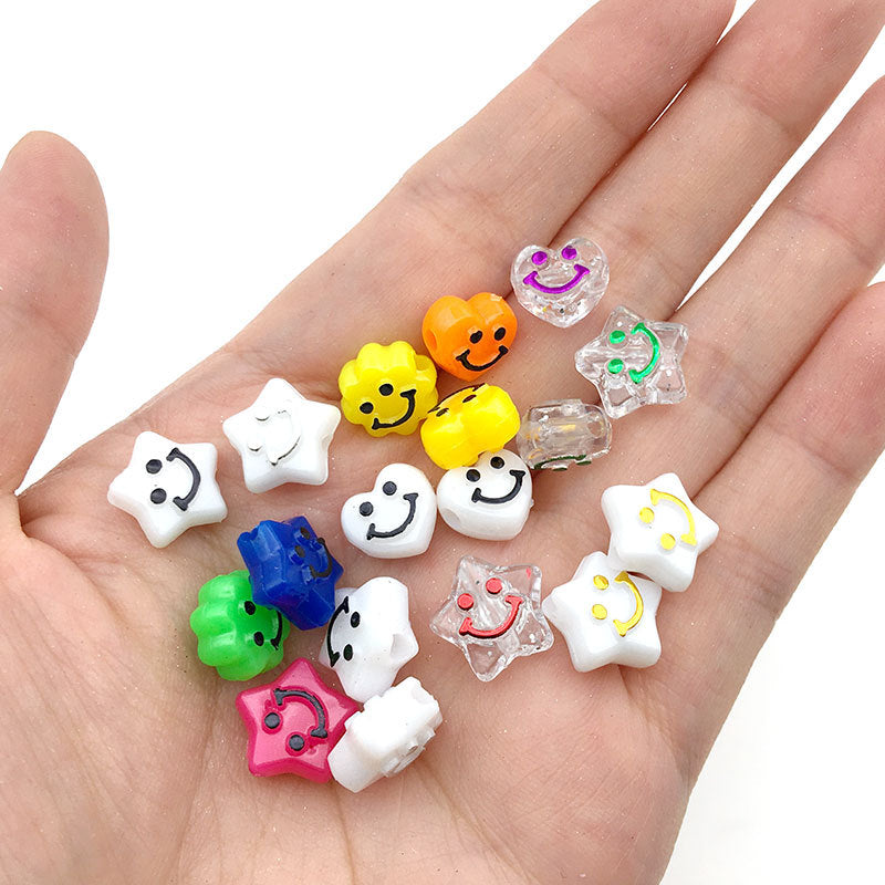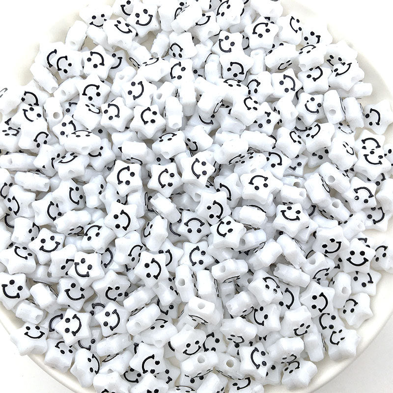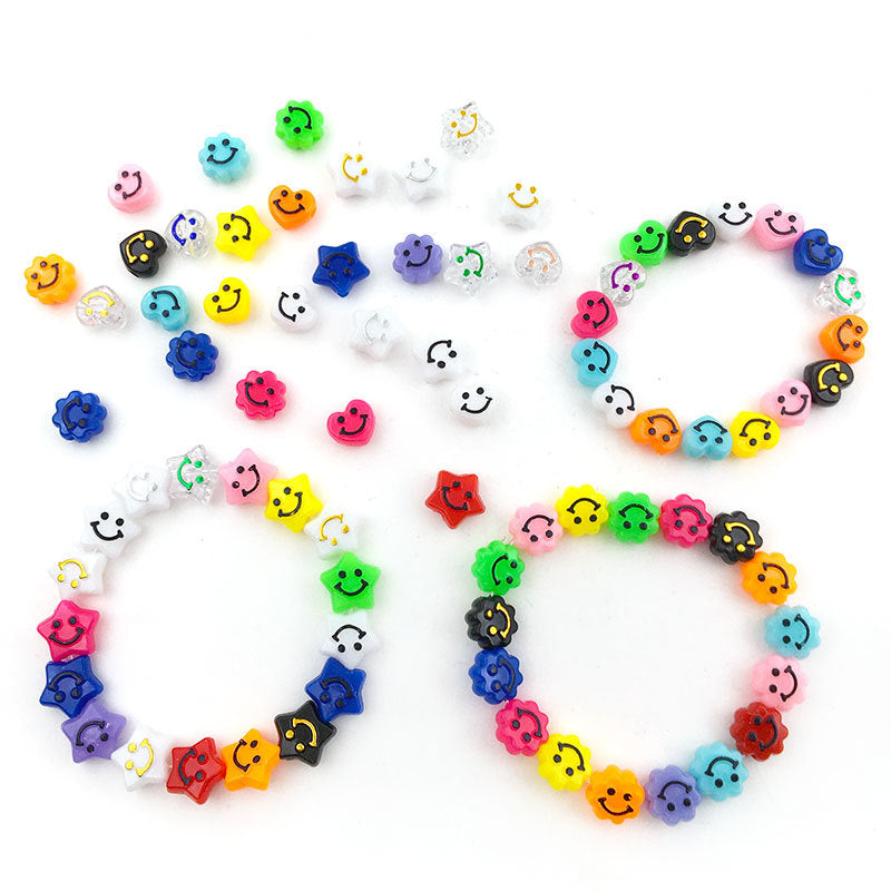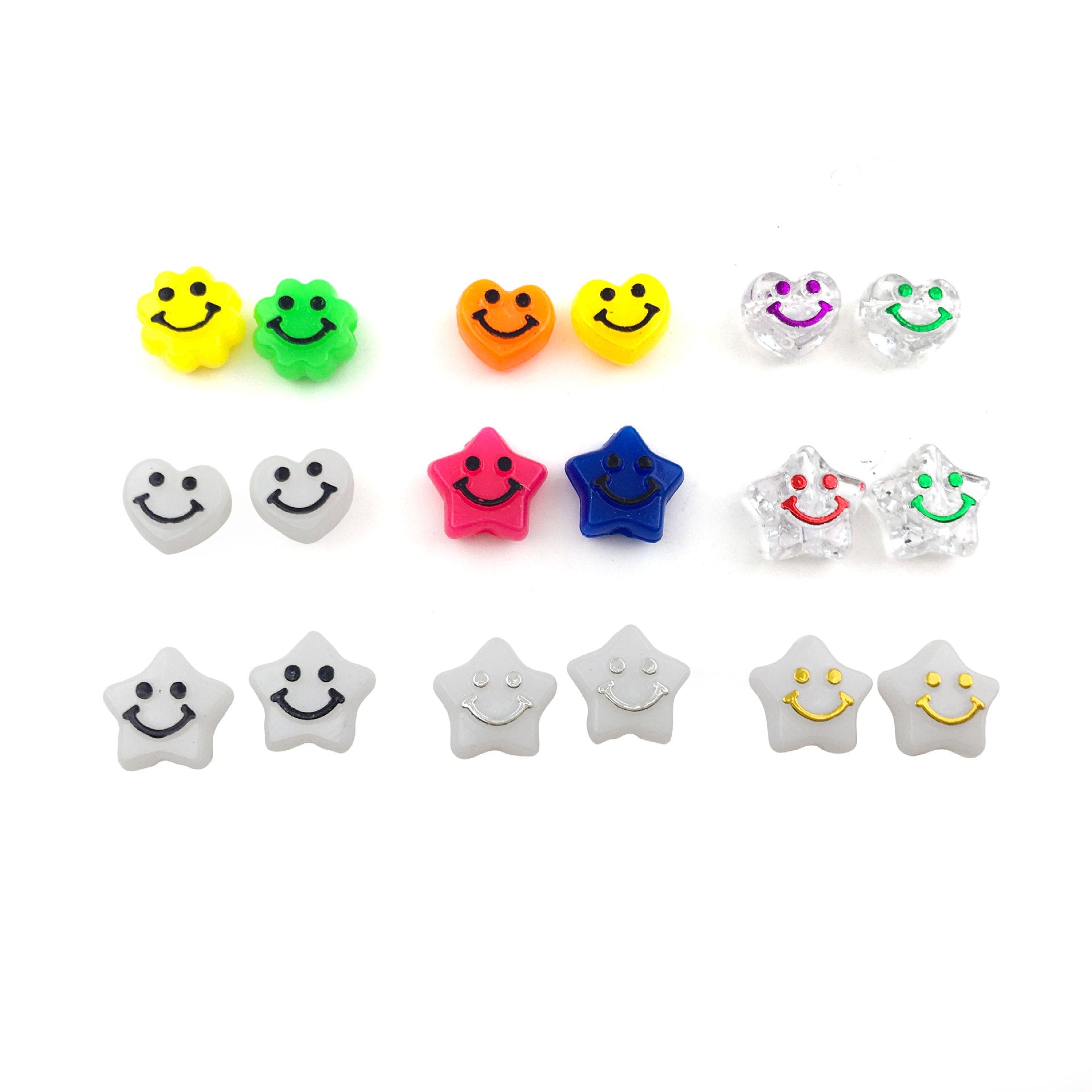 Wholesale 100PCS/Pack Star Heart Smiley Acrylic Beads 1CM Bracelet Accessories