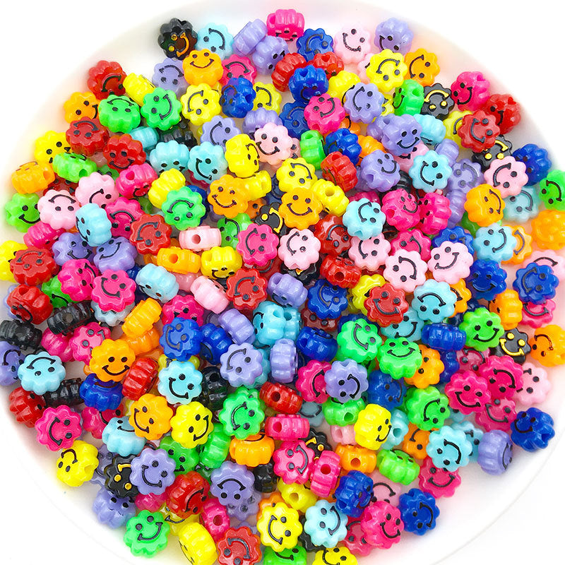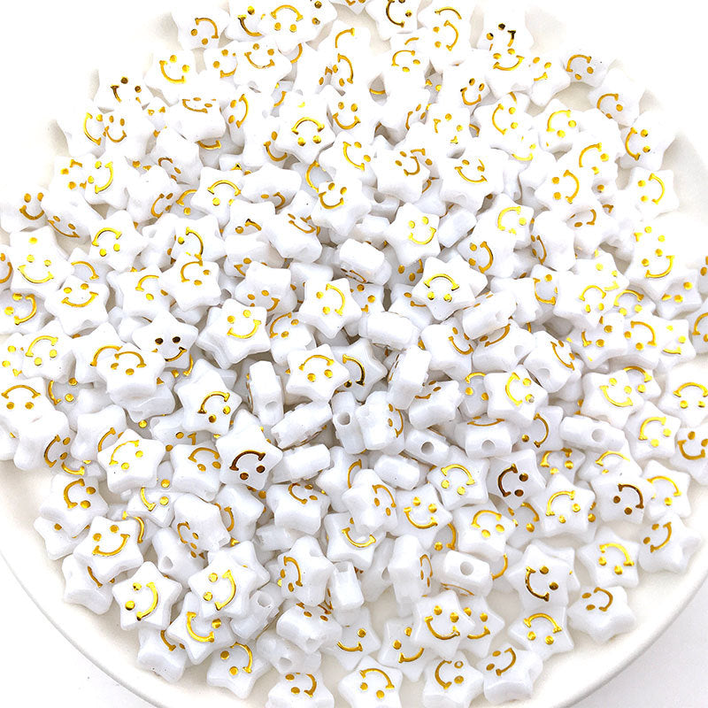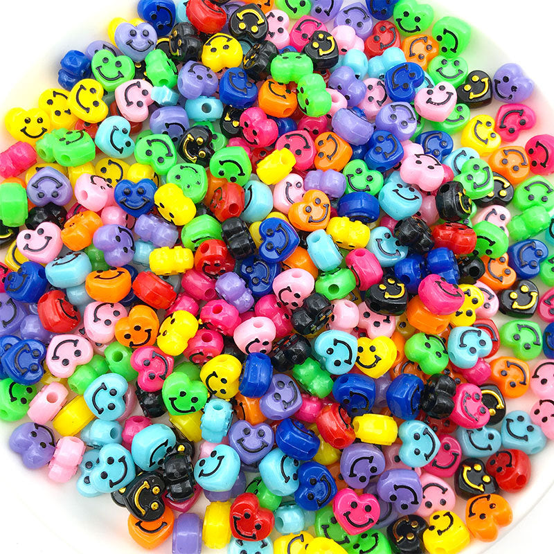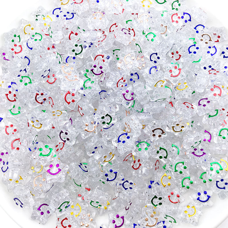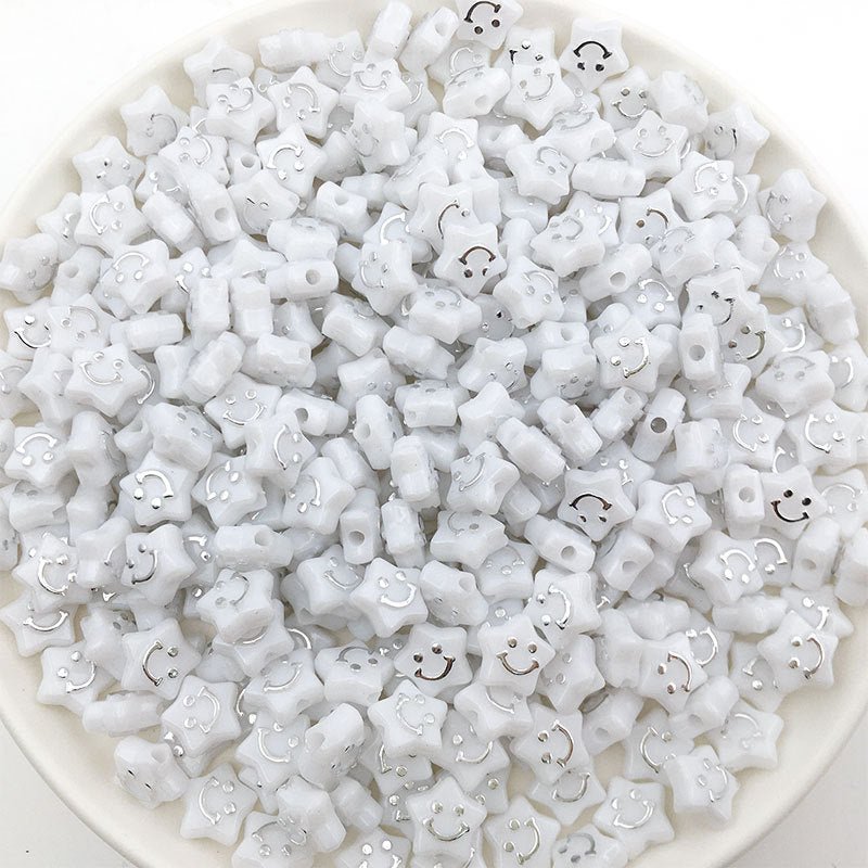 Wholesale 100PCS/Pack Star Heart Smiley Acrylic Beads 1CM Bracelet Accessories