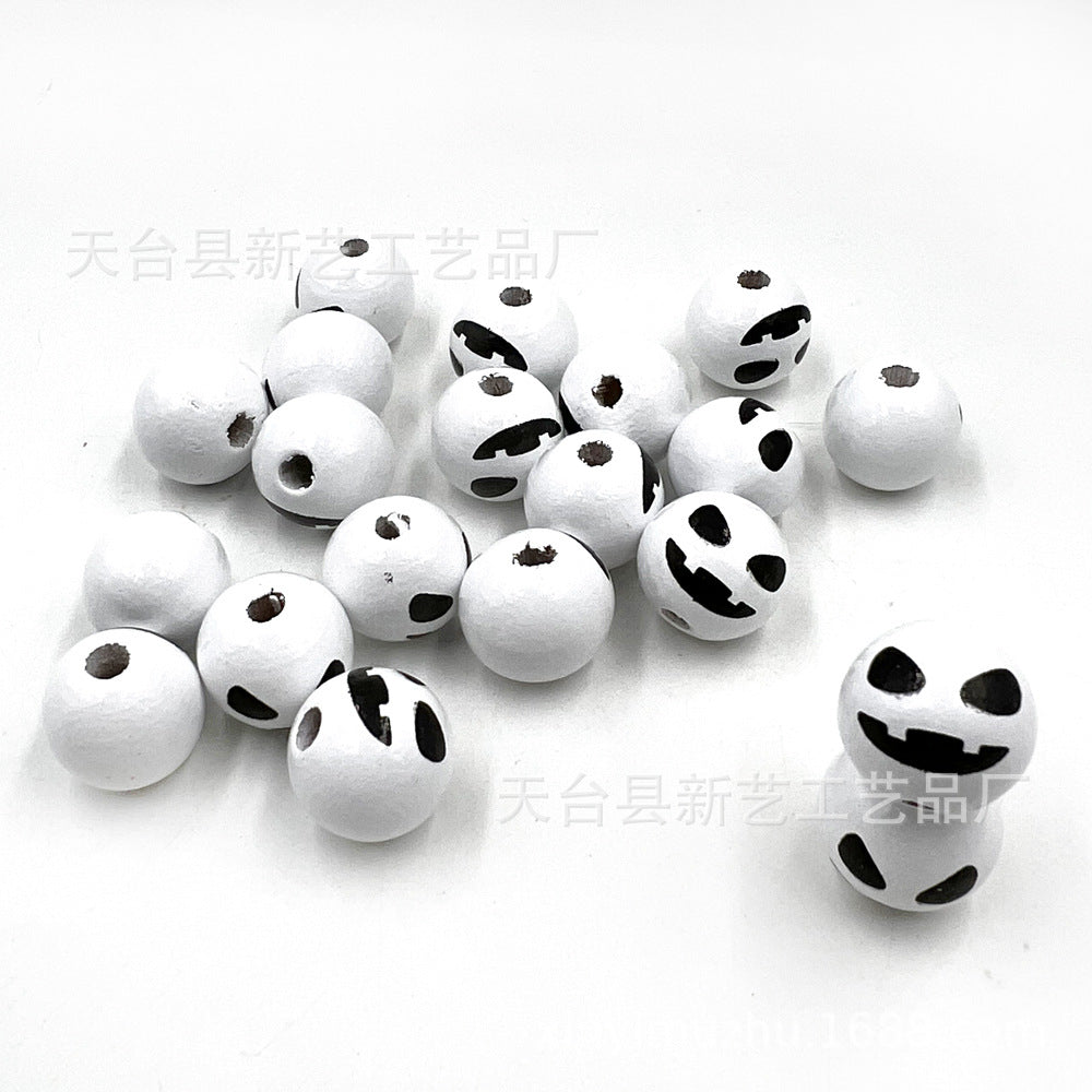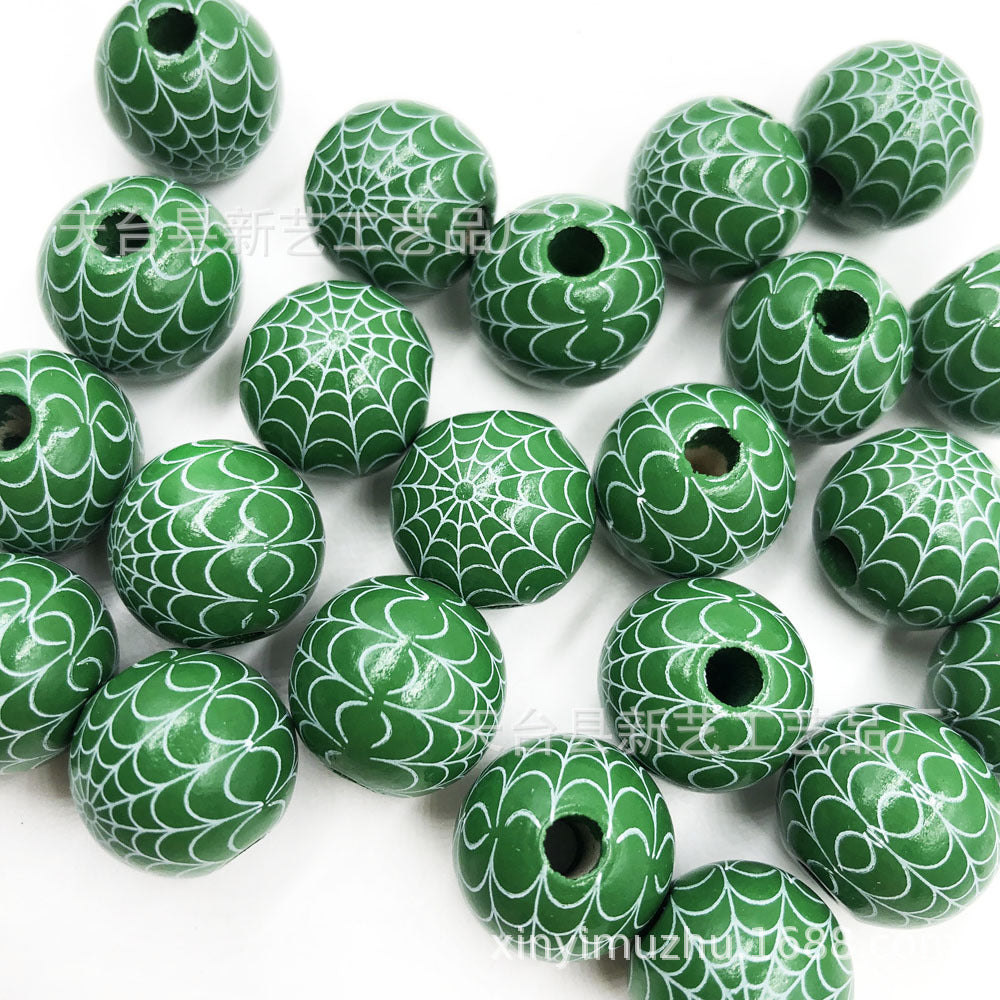 Wholesale 20PCS Halloween Christmas Spider Web Grimace Colorful Wooden Beads