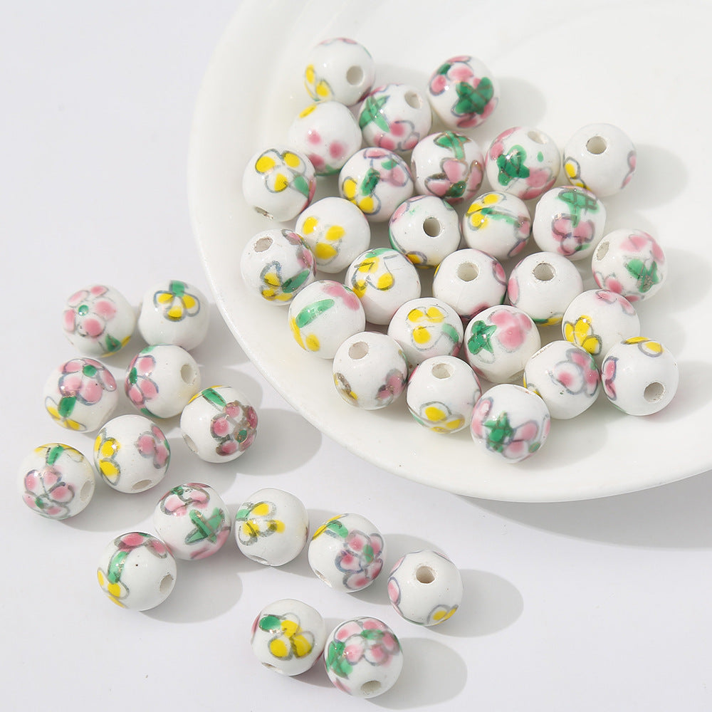 Wholesale 5PCS/PACK Painted Flowers Ceramic Beads