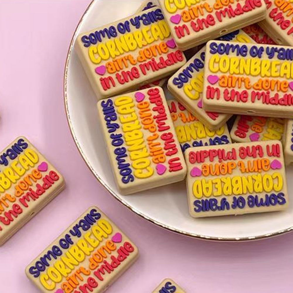 Wholesale 20pcs Cartoon Cornbread Colorful Alphabet Silicone Beads