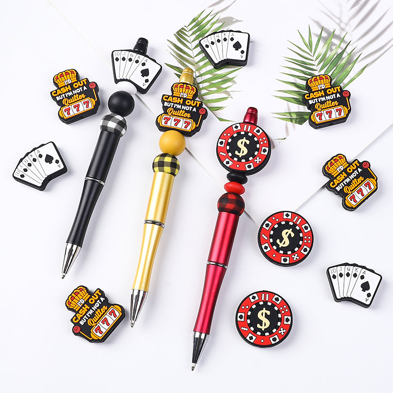 Wholesale 20pcs Cartoon Playing Cards Pattern Silicone Beads