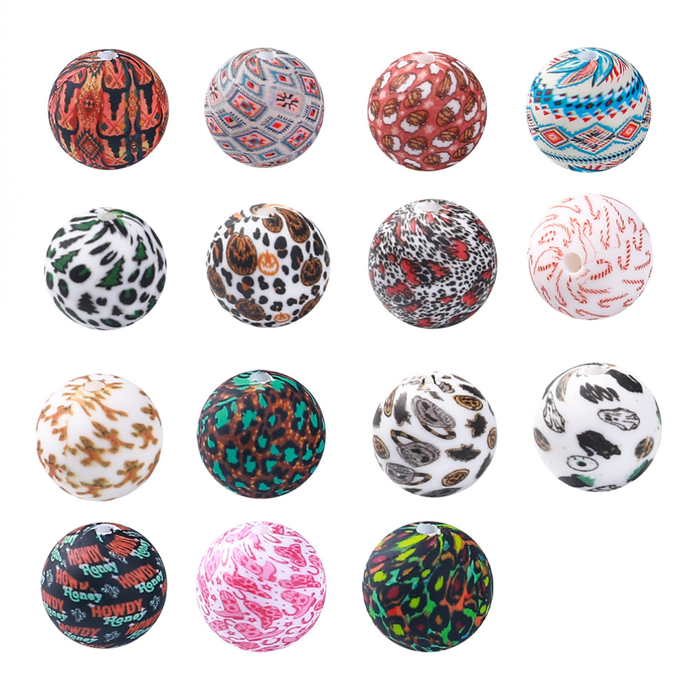 Wholesale 100pcs15mm Leopard Print Water Transfer Round Silicone Beads