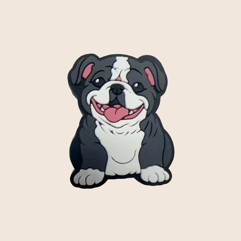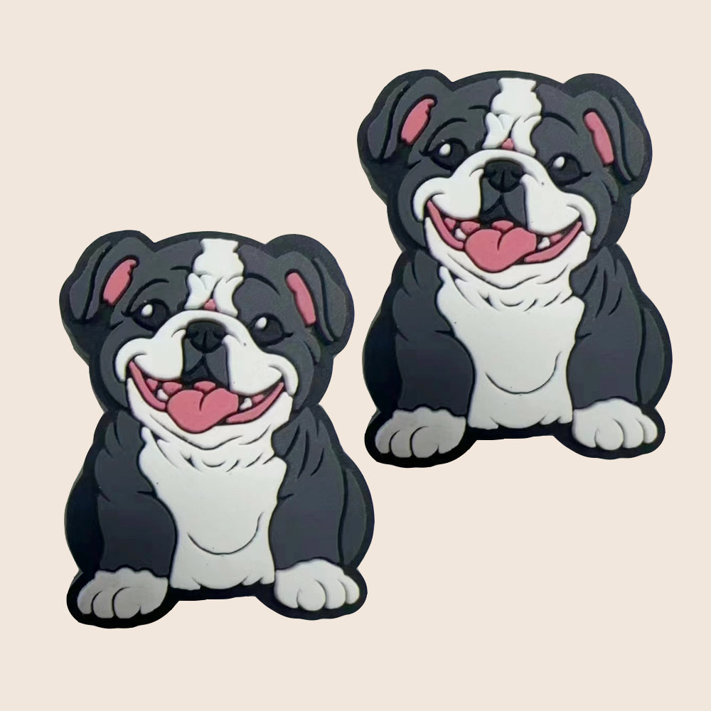 Wholesale 10pcs Cartoon Black and White Bulldog Pattern Silicone Beads