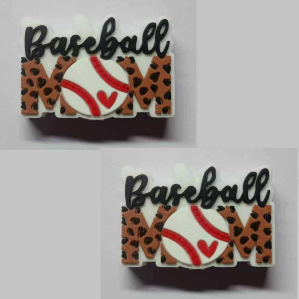 Wholesale 10pcs Cartoon Baseball Leopard Print Letters Mom Silicone Beads