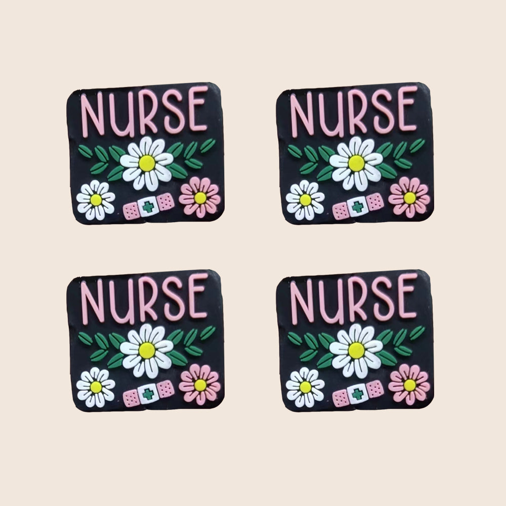 Wholesale 10pcs Cartoon Flower Band Aid Nurse Letter Silicone Beads