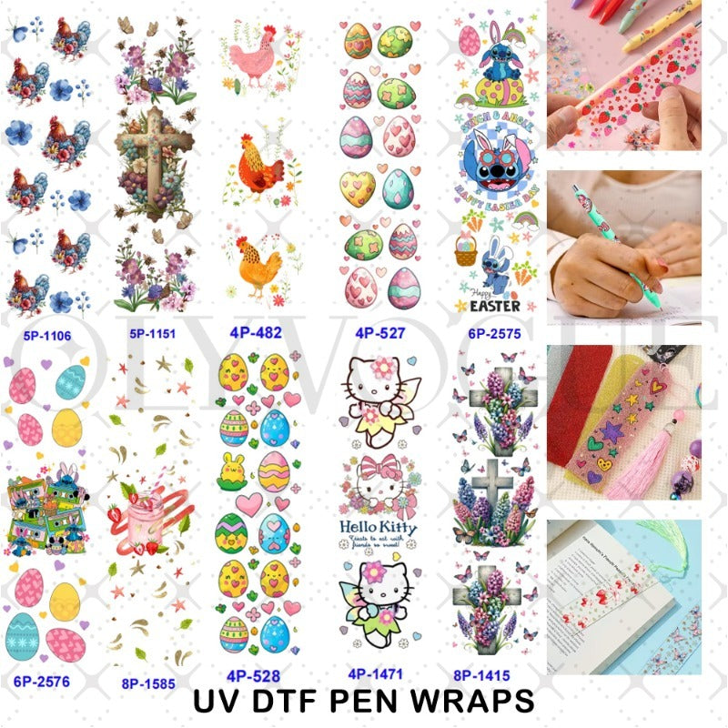 Wholesale 2/8/16pcs Easter Egg Cute Animal Flowers Pen & Bookmark Stickers UV DTF Wraps OLY Exclusive