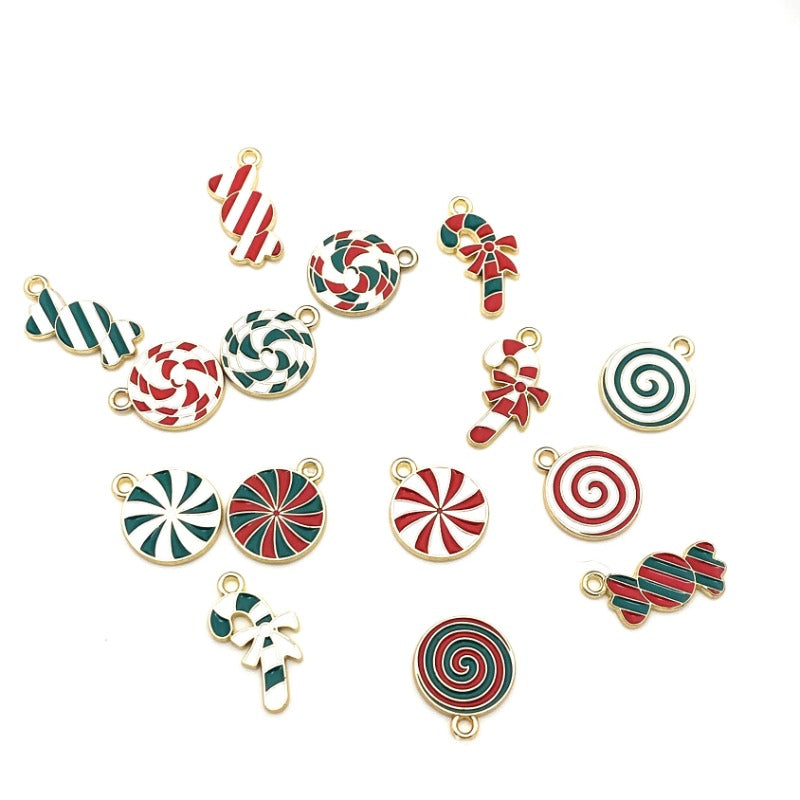 Wholesale 10pcs Christmas Candy Cane Lollipop Pendant Alloy Oil Drip Diy Pendant