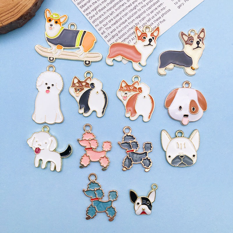 Wholesale Cartoon Japanese Cute Puppy Dog Drip Oil Alloy Necklace Bracelet Pendant
