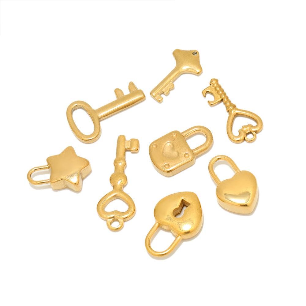 Wholesale 5PCS/PACK Stainless Steel Hollow Heart Key Padlock Small Pendant DIY Jewelry Accessories