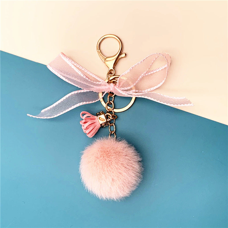 Wholesale Cute bow lace fur ball key chain
