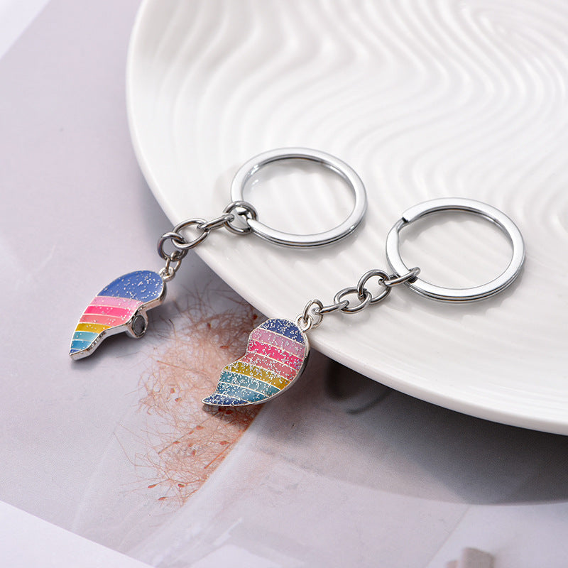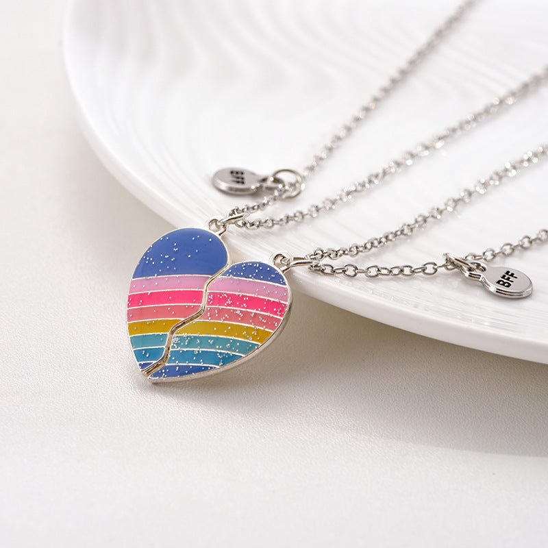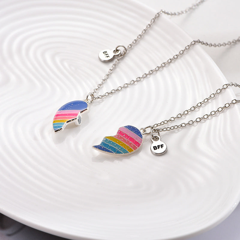 Wholesale Good friend rainbow with gold powder splicing heart magnetic necklace