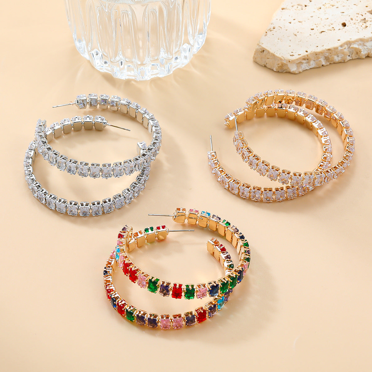 Wholesale Colorful Sparkling Circle Metal Earrings