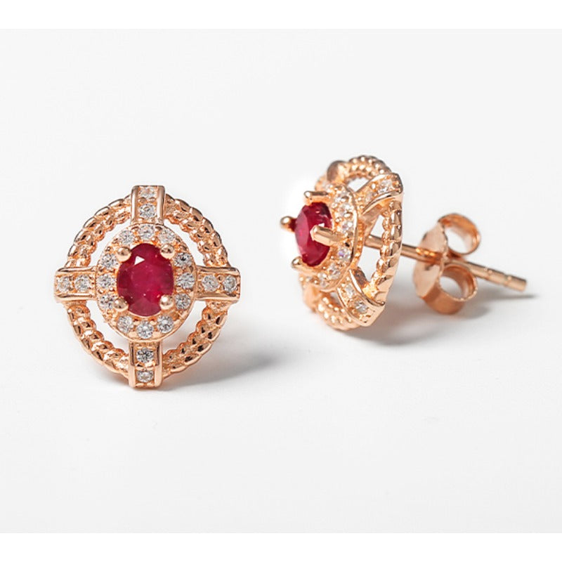 Wholesale S925 Gold Plated Natural Ruby and Diamond Earrings