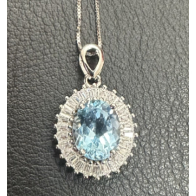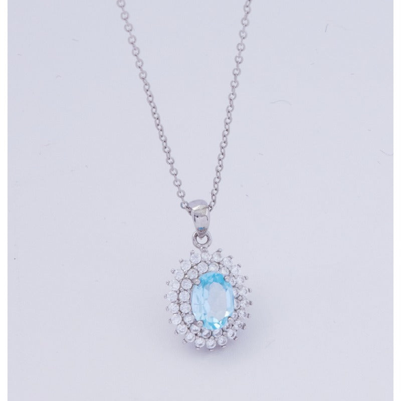 Wholesale S925 Silver Diamond Natural Topaz Sky Blue Necklace