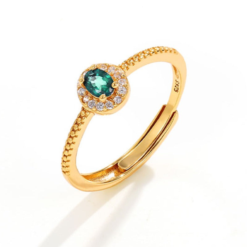 Wholesale S925 Silver Emerald Gemstone Adjustable Ring