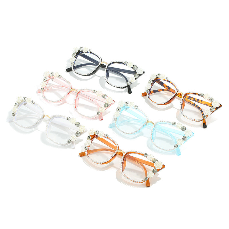 Wholesale Anti-blue Light Handmade Diamond Cat-eye Sunglasses