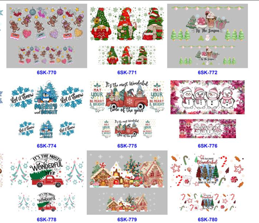 Wholesale 8pcs Creative Christmas Theme Colorful Mini Cup UV DTF Wraps