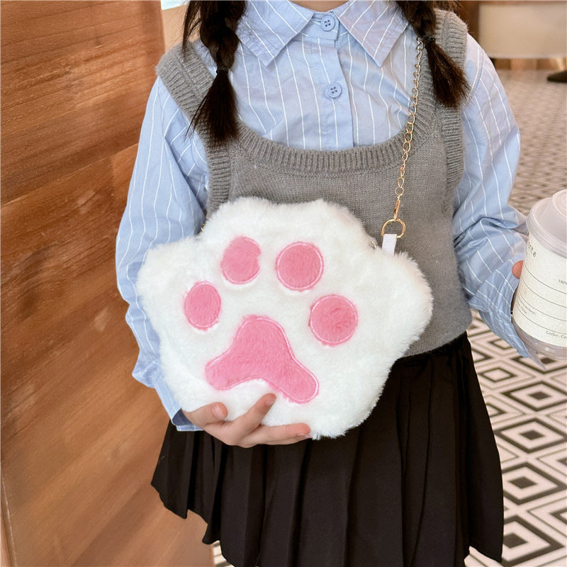 Wholesale Plush Bear Paw Chain Plush Shoulder Crossbody Bag